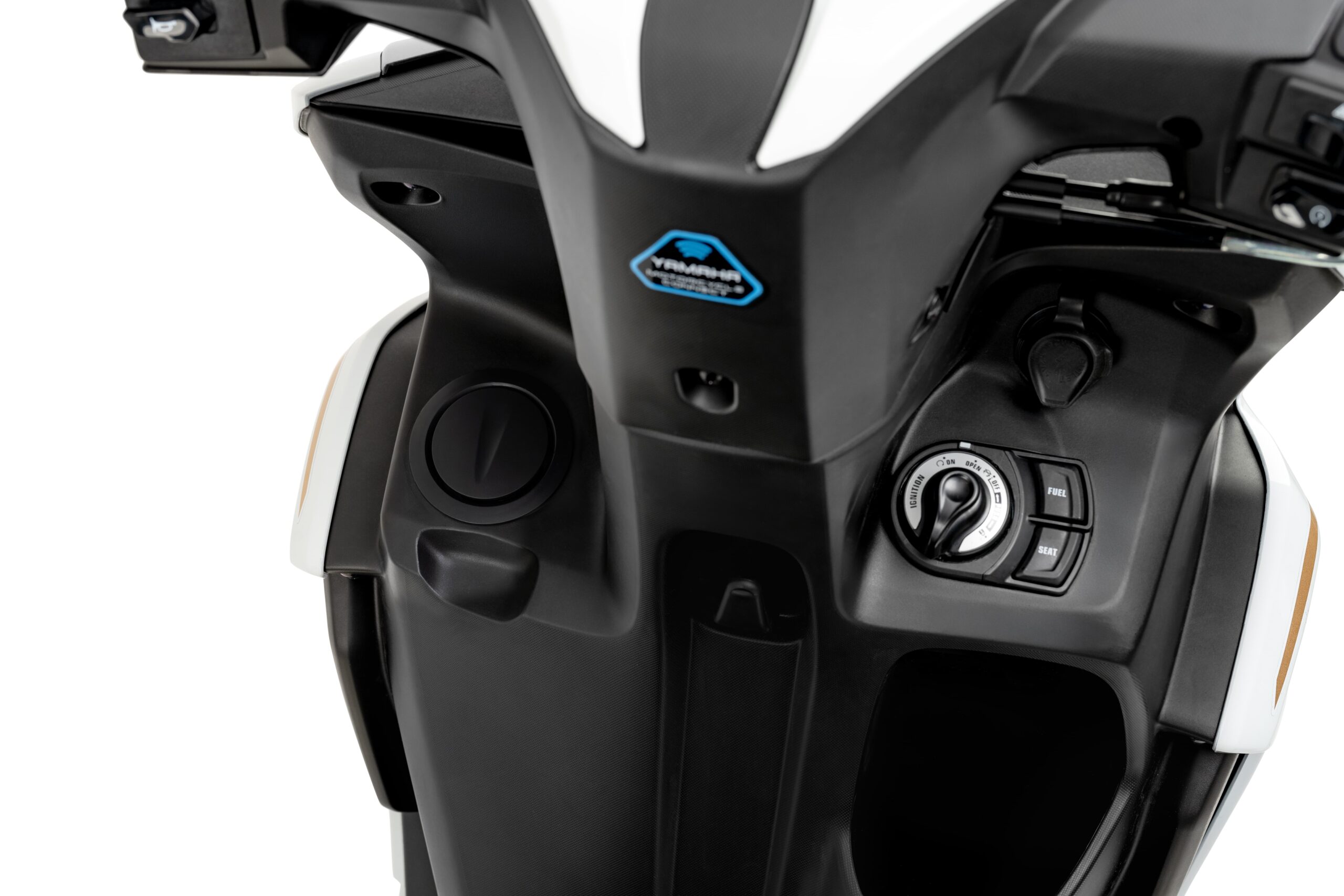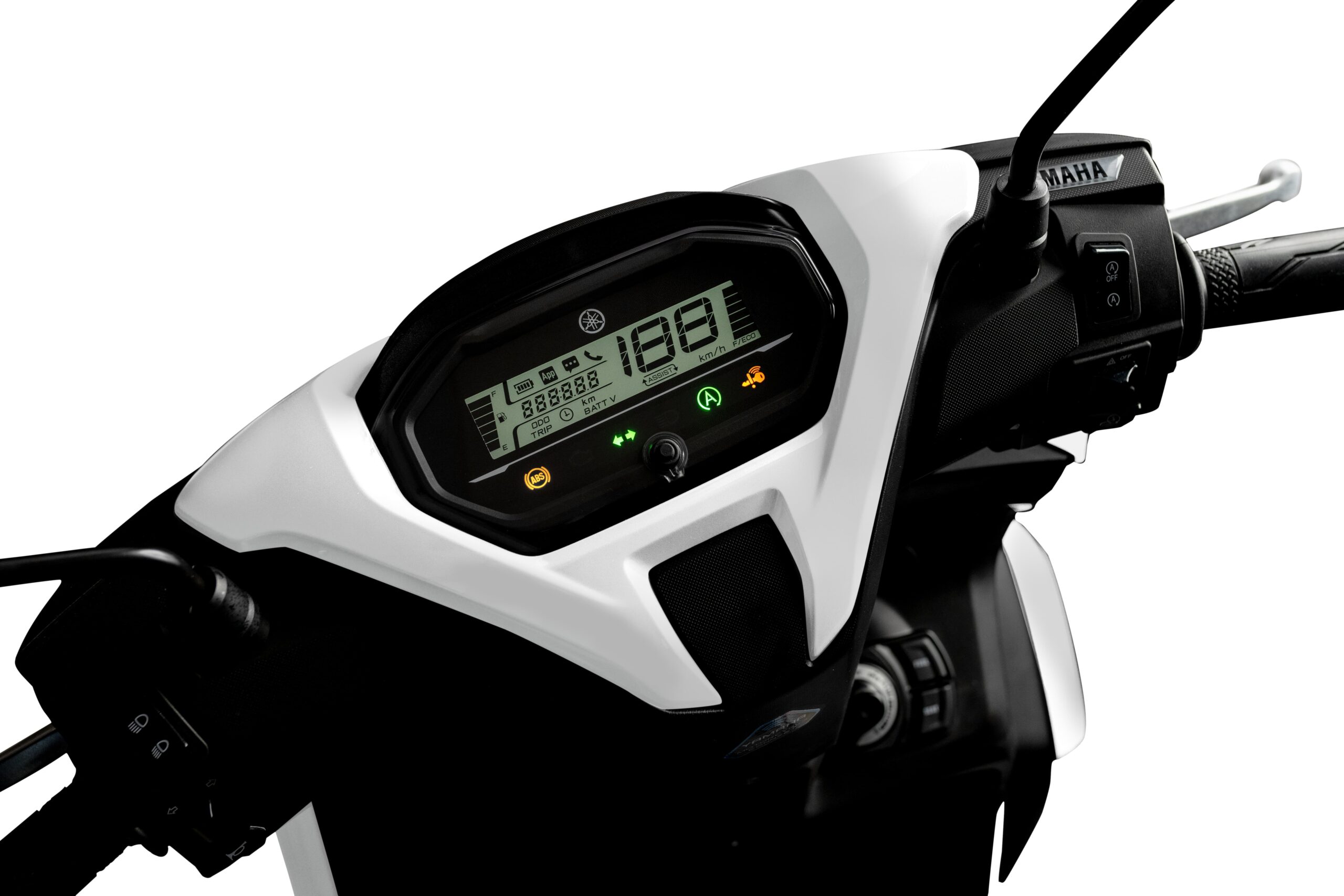 A scooter da Yamaha também é equipada com o Yamaha Motorcycle Connect, o Y-Connect, que exibe no painel indicador de status da bateria do smartphone conectado, de conectividade, de mensagem e de chamada recebida.