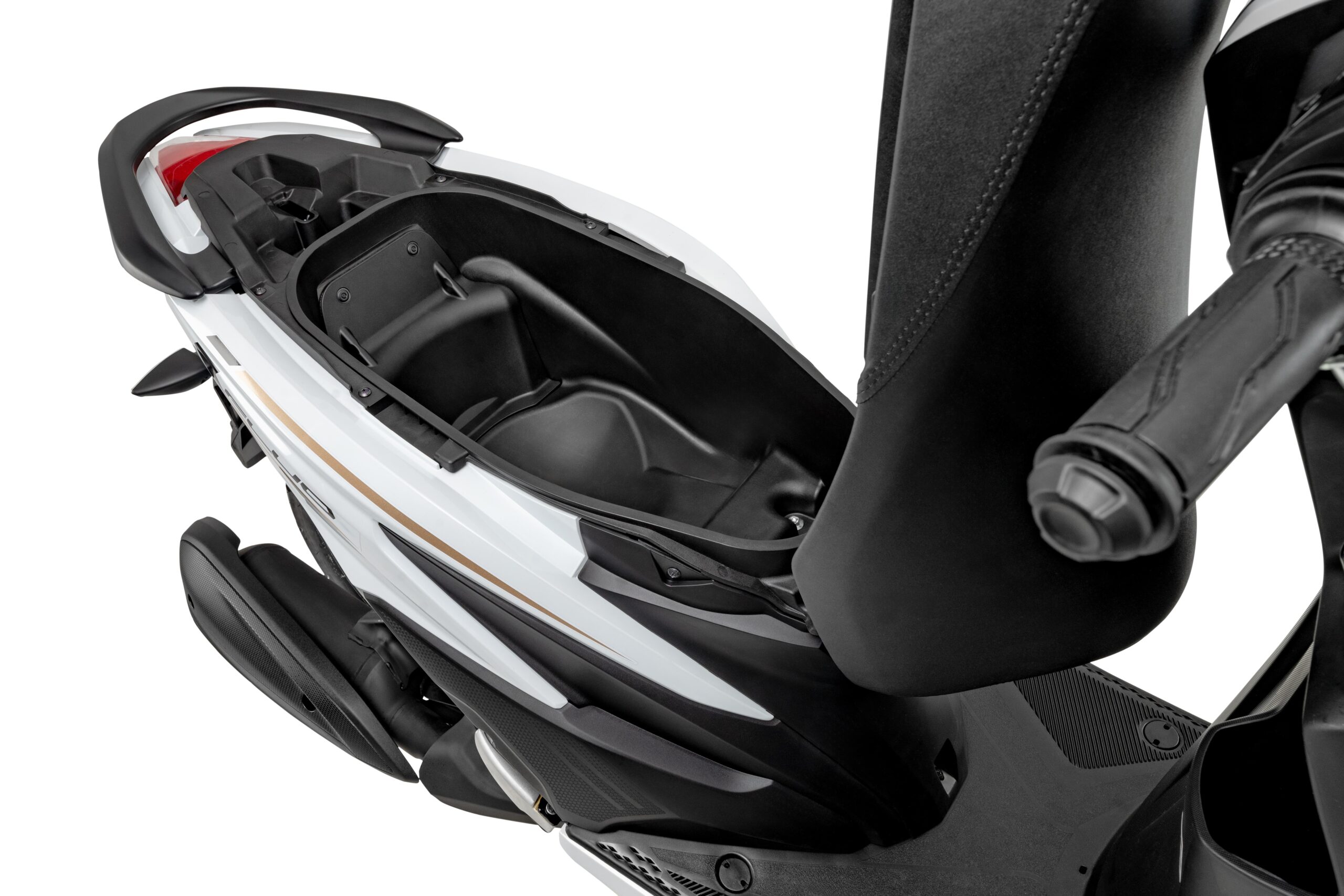 O conjunto óptico da NOVA YAMAHA FLUO ABS HYBRID CONNECTED foi completamente atualizado: os novos faróis, alto e baixo, e a luz de posição são de LED e deixaram a scooter mais sofisticada. A nova lanterna traseira e as novas setas com lentes na cor cristal tornaram a traseira da NOVA FLUO ainda mais refinada.