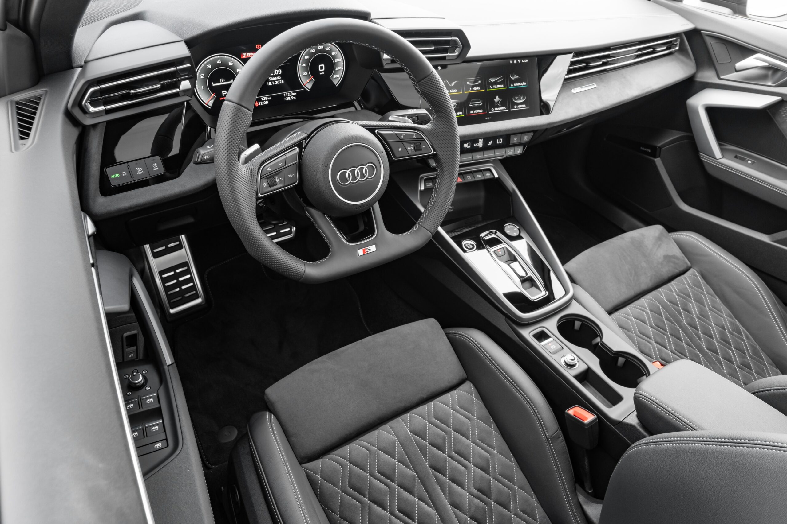 A Audi anuncia o seu primeiro lançamento no Brasil em 2025: o novo Audi A3 Sedan, em sua linha 2025, que já está disponível na rede de concessionárias da marca das quatro argolas em todo o país. O carro recebeu mudanças no design, adotando a nova linguagem visual global da marca, aprimorou a dinâmica de condução com maior torque, e ampliou a sua lista de equipamentos com itens inéditos de tecnologia, conforto e segurança, tornando-se o modelo mais equipado de sua categoria. O novo sedan compacto premium é oferecido em três versões de acabamento – Advanced, Performance e Performance Black – com preços de R$ 289.990,00; R$ 319.990 e R$ 344.990 (ANDRÉ MARINHO – JORNALISTA)
