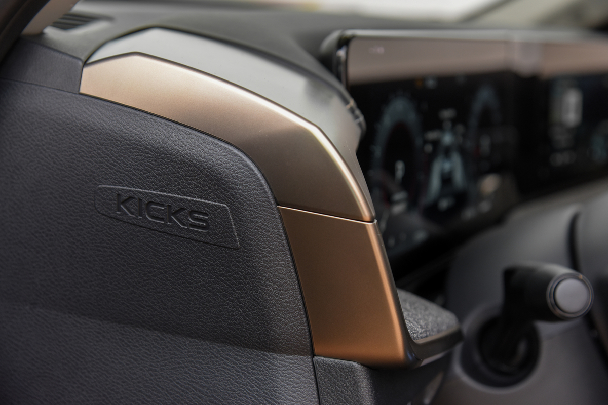 No interior, o novo Nissan Kicks tem visual tão moderno e arejado como o do exterior, tendo sido projetado para ser um contraponto com a robustez externa ao passar sensação de uma proteção envolvente, como se fosse um casulo.