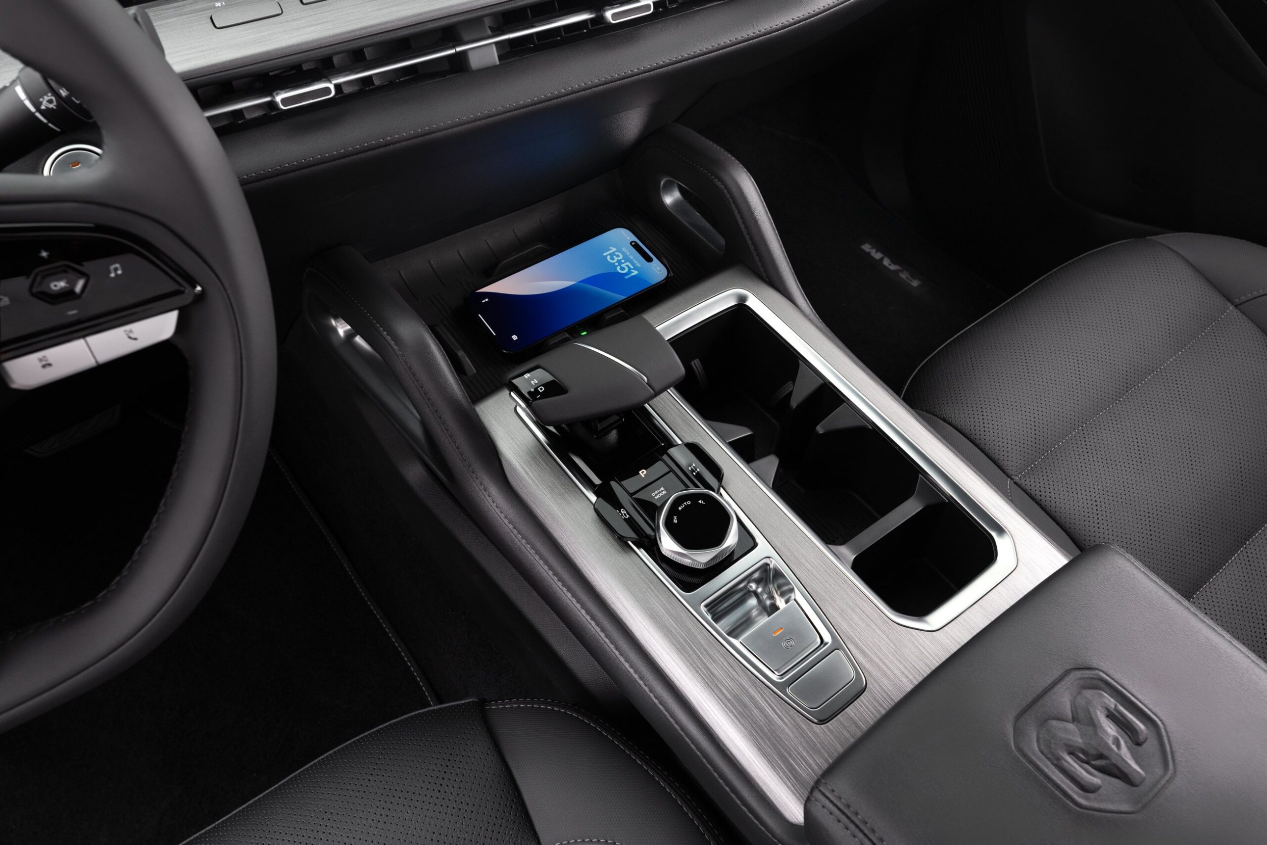 A nova picape média da Ram será impulsionada pelo excelente motor 2.2 Turbodiesel de 200 cv de potência e 450 Nm (45,9 kgfm) de torque, que passará a ser fabricado na Argentina em 2027. O propulsor é acompanhado por um câmbio automático de oito marchas. Para garantir aderência nas mais variadas condições de piso, a tração é 4×4 automática, com reduzida e modo 4×2 acionados por um comando eletrônico rotatório no console central. Há também bloqueio do diferencial traseiro com acionamento eletrônico por um botão próximo ao freio de estacionamento eletrônico.