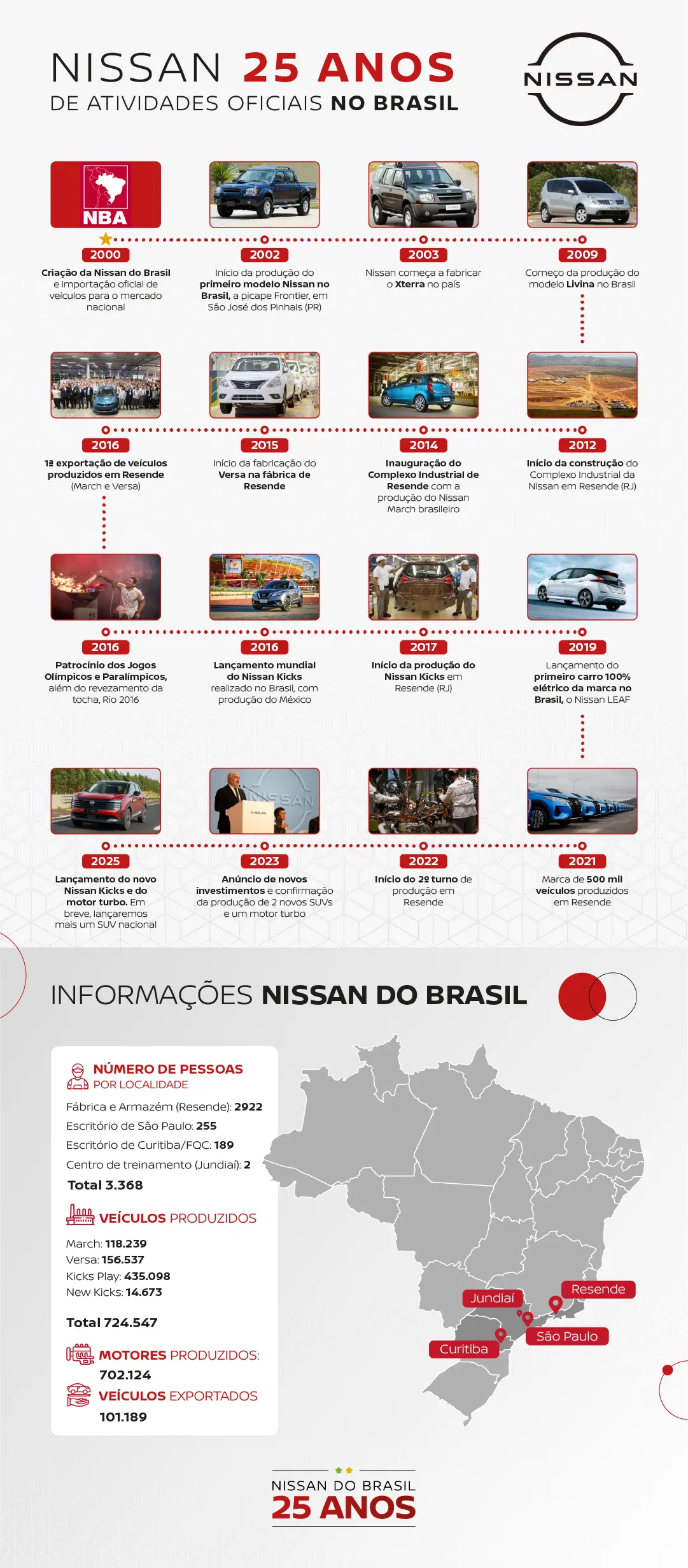 • 2025: Início da fabricação e venda do novo Nissan Kicks no país
