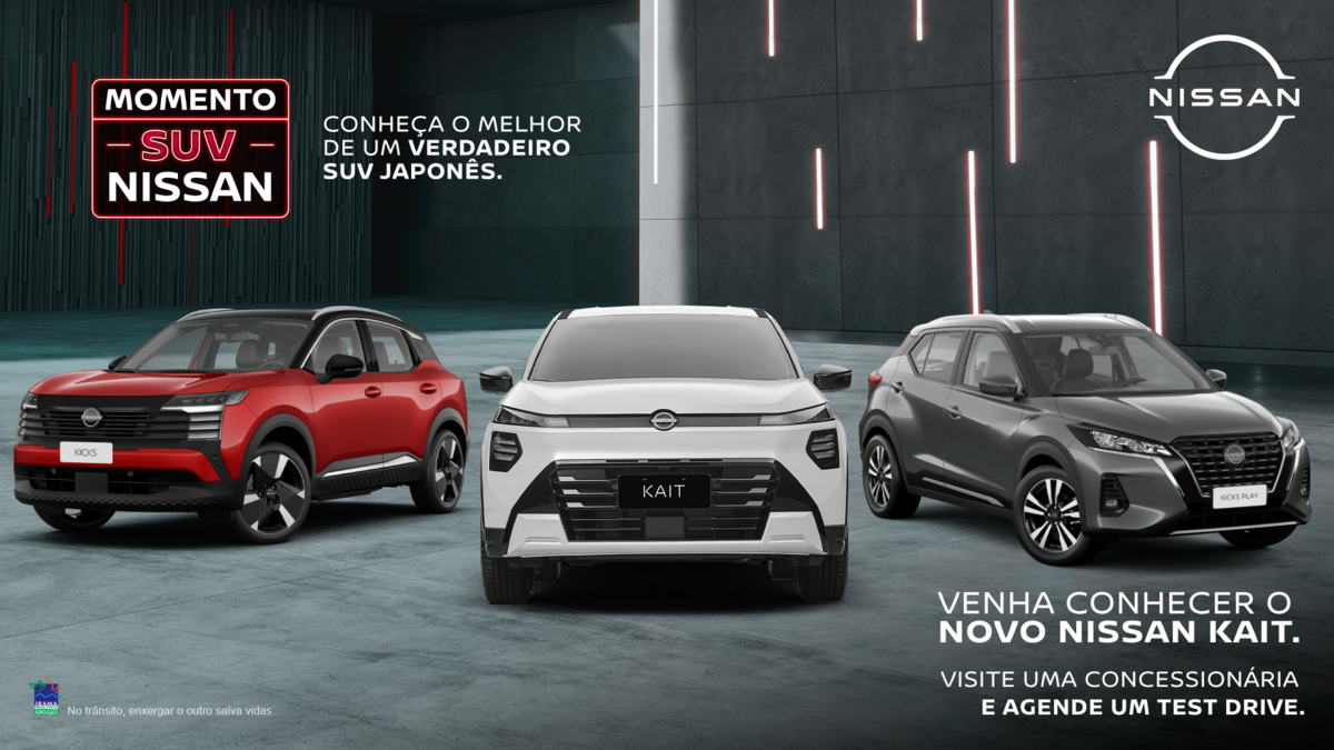 Agora já disponível em todas as concessionárias da marca no Brasil, o cliente que for a uma das lojas da rede Nissan também pode conhecer o Nissan Kait. A novidade é oferecida na versão Sense Plus também com taxa zero em 18 parcelas, com entrada de 60%. A opção traz itens como alerta de colisão frontal com assistente inteligente de frenagem e detecção de pedestre (FCW+P-FEB) e alerta inteligente e assistente de prevenção de mudança de faixa (LDW+LDP).