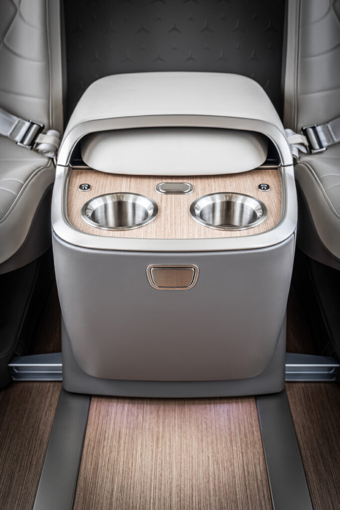 Enquanto a Airbus cuida dos aspectos técnicos da aeronave, cabe à Mercedes dar os toques de luxo e conforto aos passageiros. A cabine busca reproduzir um ambiente conhecido dos fãs da marca, mas, para atender a um cliente mais que VIP, é possível mexer em quase tudo.